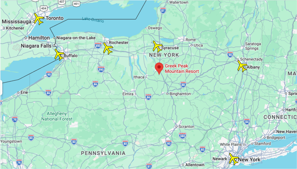 - Albany International Airport (ALB): 2.5 hours